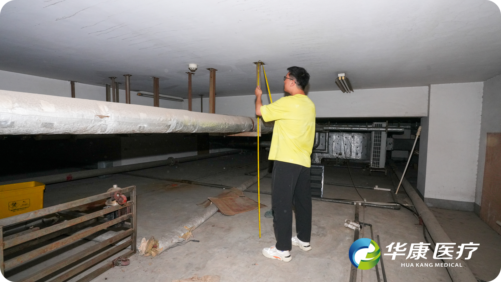 經(jīng)過項目組現(xiàn)場勘測發(fā)現(xiàn),施工區(qū)域的建筑層高極低,部分手術(shù)室梁下凈高只有2.9米,部分輔房梁下凈高在2.75-2.8米左右,遠低于現(xiàn)代手術(shù)室建設(shè)的3米凈高、梁下3.8米凈高要求。
